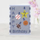 Sportliche Geburtstagskarte für den Zweijährigen. Kann im Inneren mit dem Namen des Kindes personalisiert werden.
