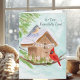This hand-painted watercolor features a charming birdhouse adorned with a Happy Birthday banner, as a tufted titmouse and a cardinal stop by on a crisp winter day. Soft seasonal details and gentle colors create a warm, thoughtful scene, making it a lovely birthday piece for someone celebrating their 30th birthday!