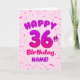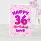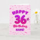 Celebrate their 36th birthday with a bright, cheerful, and personalizable birthday card! This custom name birthday card features a bold number thirty six balloon and colorful confetti.