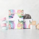 roze derde tweede verjaardag. Leuk om te geven als cadeau aan iemand die drie jaar is geworden. Vrolijk design met regenboog kleuren.