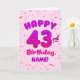 Celebrate their 43rd birthday with a bright, cheerful, and personalizable birthday card! This custom name birthday card features a bold number forty three balloon and colorful confetti.