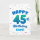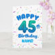 Celebrate their 45th birthday with a bright, cheerful, and personalizable birthday card! This custom name birthday card features a bold number forty five balloon and colorful confetti.