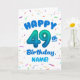 Celebrate their 49th birthday with a bright, cheerful, and personalizable birthday card! This custom name birthday card features a bold number forty nine balloon and colorful confetti.