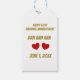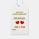 Eleganter Gold Text Happy 50th Wedding Jubiläum auf klarem Hintergrund mit zwei roten Herzen. Der Kunde kann Namen und Daten ändern. Von celeste@khoncepts.com zum 50. Geburtstag