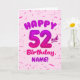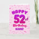 Happy 52nd Birthday Card with Custom Name Karte