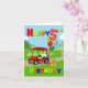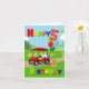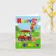 Ein leuchtend roter Golfwagen, der in die Geburtstagsszene hineinzoomt, sorgt für Spannung und Fröhlichkeit! Auf der Vorderseite befindet sich ein festlicher Golf-Kuchen, auf der Rückseite finden Sie bunte Geschenke und Ballons, die mit einem riesigen Ballon der Nummer 5 überragt sind. Mit fett gedrucktem, primärem Text ist diese Karte ideal, um einen besonderen Tag für einen kleinen Jungen zu feiern.