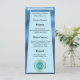 Eine elegante Speisekarte mit aquamarinem Blau- und Folienmuster und Ihrer einzigartigen Geburtstagsnummer in Glitzer und Gold.
