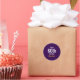 The stickers are dark purple. They have text for the recipient's name in a faux gold script and the phrase Happy 60th Birthday (not in script). The name (Shown: Elizabeth) appears in an elegant faux (not foil) gold script. The other text is white. All of the text can be edited.