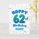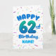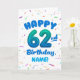 Celebrate their 62nd birthday with a bright, cheerful, and personalizable birthday card! This custom name birthday card features a bold number sixry-two balloon and colorful confetti.