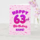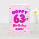 Celebrate their 63rd birthday with a bright, cheerful, and personalizable birthday card! This custom name birthday card features a bold number sixty-three balloon and colorful confetti.