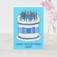 A simple illustration of a blue and white birthday cake, decorated with lit candles on top and a blue bow tied around it. The image is set against a turquoise colored background and accompanied by the words 'Happy 70th Birthday Nate'.