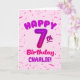Celebrate their 7th birthday with a bright, cheerful, and personalizable birthday card! This custom name birthday card features a bold balloon-style number seven and colorful confetti.