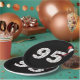 95. Geburtstagsparty mit fett schwarz-weiß glücklich und Nummer 95 Text auf schwarz mit Party Ballon Bouquet. Die schwarze Hintergrundfarbe kann geändert werden.