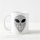 Glückliche Alien Big Toothy Lächeln Kaffee Tasse Cosmic Science Fiction Tasse Grau, schwarz und weiß Zähnen Cup. Fügen Sie Text und Bilder hinzu, wenn Sie möchten.