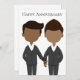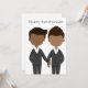 Eine wunderschöne Hochzeitskarte für ein homosexuelles Ehepaar, das verheiratet got hat. Ein zeichn eines schwarzen Mannes und eines hispanischen oder afroamerikanischen Mannes, der Tuxedos trägt und Hände hält. Eine niedliche LGBT Grußkarte, um zwei Männer zu gratulieren.