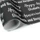 This black and white anniversary wrapping paper says "Happy Anniversary" in a cursive script. The text you can change to the names of the husband and wife is not in script. This is black wrapping paper with white text. All text can be edited or deleted.
