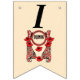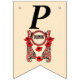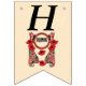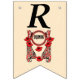Diese Fahne geformt bunting Happy Jubiläumsbanner ist eine gelblich creme Farbe mit einem abstrakten Design ist rot und schwarz mit Mohn Blume und Schmetterlinge. Der Text Dreaming ist in einem schwarzen und roten Kreis. Passen Sie den Text zum glücklichen Jubiläum mit den Vorlagen an.