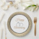 Party-Papierplatte in einem schönen Gold-feinen Glitzer-Druck rund um den Rand und Weiß Zentrum gezeigt. Happy Jubiläum in einem extravaganten Drehbuch in der Mitte mit zwei miteinander verbundenen Ringen. In 9" Größe angezeigt. Verkauft in Paket mit acht. Passen Sie dieses Objekt an oder kaufen Sie, wie es ist.