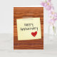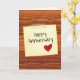 Gelbe Note mit Klebeband, doodle rotes Herz und Happy Anniversary Text. Text kann geändert werden.