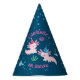 Machen Sie Ihren kleinen Tag ganz besonders mit diesem Happy Axolotl Aquatic Birthday Adventure Party Hat. Personalisieren Sie, indem Sie den Namen und das Alter Ihres Kindes hinzufügen! Verfügbare Matching-Elemente.