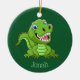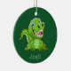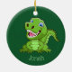 Baby T-Rex Dinosaurier Ornament mit anpassbarer Hintergrundfarbe und Text auf beiden Seiten.