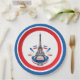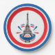 Festliches Bastille-Tagesdesign mit dem Eiffelturm, französischen Fahnen und roten, weißen und blauen Noten. Bild von vecteezy.com.