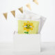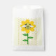 Dieses phantastische Paket mit 50 Gefälligkeitstaschen zeigt ein grafisches Bild einer niedlichen gelben Hummel mit schwarzen Streifen, Augen, Antennen und Beinen. Es hat hübsche blaue und weiße Flügel. Die Biene sitzt inmitten einer goldgelben Sonnenblume. Die Blume hat einen grünen Stiel und drei Blätter. Die Meldung "Happy Bee Day" erscheint auf den drei Blätter verteilt. Der Hintergrund besteht aus einem gelben Wabenmuster.
