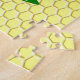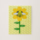 Dieses phantastische Rätsel zeigt ein grafisches Bild einer niedlichen gelben Hummel mit schwarzen Streifen, Augen, Antennen und Beinen. Es hat hübsche blaue und weiße Flügel. Die Biene sitzt inmitten einer goldgelben Sonnenblume. Die Blume hat einen grünen Stiel und drei Blätter. Die Meldung "Happy Bee Day" erscheint auf den drei Blätter verteilt. Der Hintergrund besteht aus einem gelben Wabenmuster.