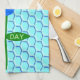 Dieses phantastische Küchentuch zeigt ein grafisches Bild einer niedlichen blauen Hummel mit hellblauen Streifen, schwarzen Augen, blauen Antennen und schwarzen Beinen. Es hat hübsche blaue und weiße Flügel. Die Biene sitzt inmitten einer hübschen blauen Sonnenblume. Die Blume hat einen grünen Stiel und drei Blätter. Die Meldung "Bee Day Boy" erscheint auf den drei Blätter verteilt. Der Hintergrund besteht aus einem blassblauen Wabenmuster.