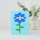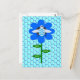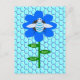 Diese niedliche Postkarte zeigt ein grafisches Bild einer niedlichen blauen Hummel mit hellblauen Streifen, schwarzen Augen, blauen Antennen und schwarzen Beinen. Es hat hübsche blaue und weiße Flügel. Die Biene sitzt inmitten einer hübschen blauen Sonnenblume. Die Blume hat einen grünen Stiel und drei Blätter. Die Meldung "Bee Day Boy" erscheint auf den drei Blätter verteilt. Der Hintergrund besteht aus einem blassblauen Wabenmuster.