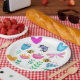Ein lustiges skurriles Design von Blume, Bienen, Schmetterlingen und Herzen