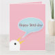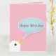 Illustration eines weißen Vogels, Sprechblase und benutzerdefinierter Text auf der Vorderseite. Im Inneren ist ein schwarzer Vogel mit Sprechblase.