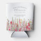 Perfect table decor for an August birthday party. Pink gladiolus is the birth flower for that month. It forms a pretty watercolor bottom border on this floral personalized can cooler. The birthday guest of honor's name, age and birthdate are placed above it using elegant calligraphy and typography. All text is editable.