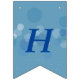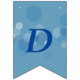 Diese Fahne geformt bunting Happy Birthday Banner ist blau mit einem abstrakten Design von Kreisen und Strichen in verschiedenen Tönen von blau. Passen Sie das Geburtstagsjahr und den Geburtstagstext von Happy Birthday mit den Vorlagen an.