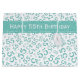 Meilenstein Nummer 55. Dieses moderne, numerische Design ist ein aquamarines und weißes Zeitnischenmuster, bei dem sich der Meilenstein Nummer 55 in verschiedenen Größen und Winkeln in einem zufälligen Gesamtbild Ihrer Alterszahl wiederholt. Es gibt ein aquamarines Band und ein weißes Tag, das über das Zahlenmuster mit Vorlagen gedruckt wird, sodass Sie mit Ihren benutzerdefinierten Wörtern, Name Initial oder Monogramm personalisieren können. Das Design ist eine coole Idee für eine personalisierte Geschenkverpackung für einen besondere Anlass. Es eignet sich für Geburtstage, Jubiläen oder jede Anlässe, bei denen Sie die Nummer 55 feiern. Sie können den Text einfach so personalisieren, dass er für Ihre Veranstaltung geeignet ist. Personalisieren Sie einfach das weiße Tag und "Happy 55 th Birthday" mit den mitgelieferten Vorlagen.