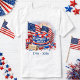 This unisex t-shirt features a patriotic red, white, and blue flag and birthday cake design. It's a celebratory design perfect for honoring America's 250th birthday. (Ai prompt design by Susang60