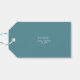 Dieses moderne und elegante Geschenketikett mit weißem Happy Birthday Text auf der Vorderseite und auf der Rückseite personalisieren Sie ihn mit Ihrem Namen oder Familiennamen. Der Hintergrund ist aquamarin blau.