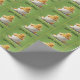 Ein niedliches, gelbes Baby-Küken, das aus einem weißen Ei auf grünem Hintergrund zum Geburtstag schlüpft.
