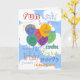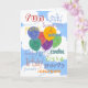 Die bunte Grafik-Geburtstagskarte für jedes Kind. Wörter im Inneren lesen: Oh meine Güte, dein Tag ist schön hier. Also atmen Sie tief ein, machen Sie einen großen Wunsch, blasen Sie diese Kerzen aus und jubeln Sie!! Happy Birthday