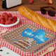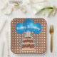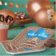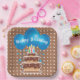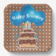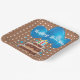 Party aus braunem Polka mit gepunktetem Papier mit Schokoladenkuchen und blauen Balloons