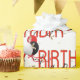 Zeitgenössischer Happy Birthday Text auf Weiß mit Party Ballons und Gold Konfetti. Die Hintergrundfarbe kann geändert werden.