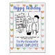Cartoon der Bankangestellten. Die Cashpoint-Maschine lacht über einen Kunden. Personalisieren Sie mit Ihrer Wahl des Wortlauts und der Insider-Nachricht. Geburtstagskarte für Bankangestellte oder Bankangestellte.
