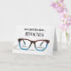 Spaß Brille mit Happy Birthday Text in der Linse auf einem weißen Hintergrund. Der Insider-Text kann geändert werden. Glücklicher Geburtstagstext kann geändert werden.