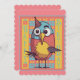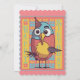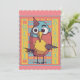 Ein farbenfroher Cartoon mit einem Party, der in der Mitte der Karte steht, und der vertikal auf beiden Seiten mit dem Aufdruck "Happy Birthday" geschrieben ist. Der Hintergrund ist mit einem Muster verpackter Geschenke in fröhlichen Farben.