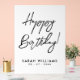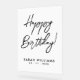 Erstellen Sie Ihr eigenes, individuelles Geburtstagsschild mit moderner Schriftzeichen-Kalligrafie, Geburtstag und minimalem Typografiennamen und Datumsdesign für personalisierte Geburtstagsdekoration.