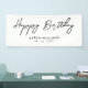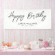Erstellen Sie Ihr eigenes, individuelles Geburtstagsbanner mit modernem Script-Kalligrafie-Happy-Geburtstag und minimalem Typografiknamen und Datumsdesign für personalisierte Geburtstagsdekoration.