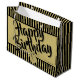 Der fette Text, Happy Birthday, der kleine Druck auf der rechten Seite, und das Geschenketikett haben Vorlagen, die es leicht machen, sich zu personalisieren. Das geometrische Design ist für alle Altersgruppen, für jeder Anlass und alle Geschlechter geeignet. Nutzen Sie die einfachen Streifen für Geburtstage, Jubiläen, Abschlüsse und vieles mehr. Das geometrische Hintergrundmuster ist ein einfaches Streifen Muster mit schwarzen und goldenen vertikalen Streifen. Dieses Design eignet sich für jeder Anlass und alle Altersgruppen auf Zuhause, Schule oder im Büro