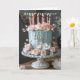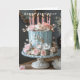 Schöne Geburtstagskarte mit einem wunderschönen blauen Kuchen mit rosa Kerzen und hübschen Rose. Ideal für ein junges Mädchen, Tochter, Großtochter, Nichte, Mama, Oma, Schwester oder beste Freundin.