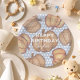 This charming and whimsical party plate is ideal for a fall birthday celebration. It showcases a delightful blue and white polka dot backdrop adorned with adorable orange and brown pumpkins painted in watercolour. You can personalise it with the birthday child’s name and birthdate. Perfect for autumn children’s birthday parties.