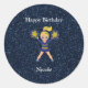"Happy Birthday" Blue Sparkle Stickers - Personalisieren Sie diese aufmunternden Geburtstagsticker mit dem Namen Ihres Cheerleader für ein Party - perfekt!